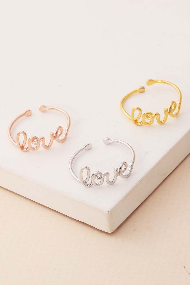 - Make a statement, this ring highlights a special gold dipped handwritten love design. This item is ideal for those who want to add some personality to their wardrobe without being too bold. Available in G and S. This item is sold in packs of 1.