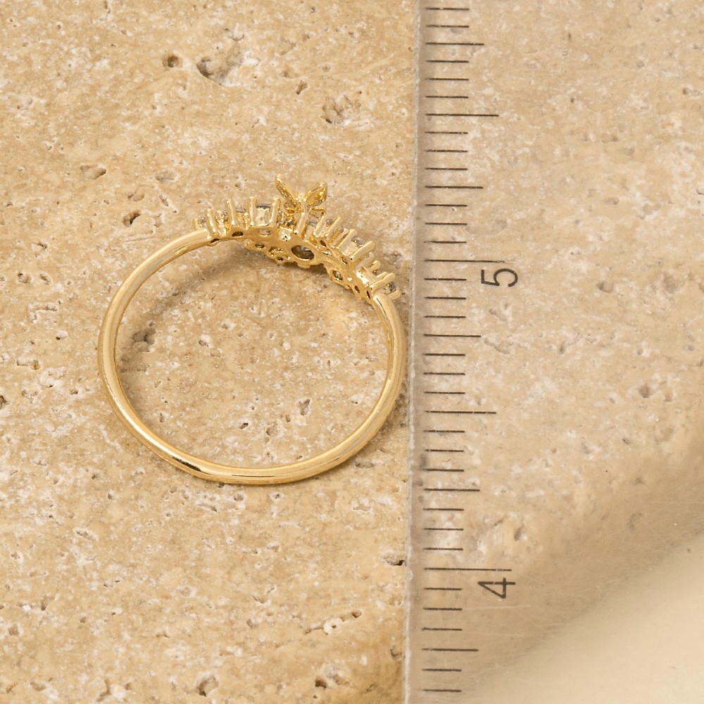 Gold Dipped Cz Flower And Butterfly Ring
