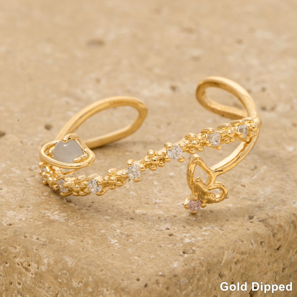 Gold Dipped Cz Colorful Moon Open Ring