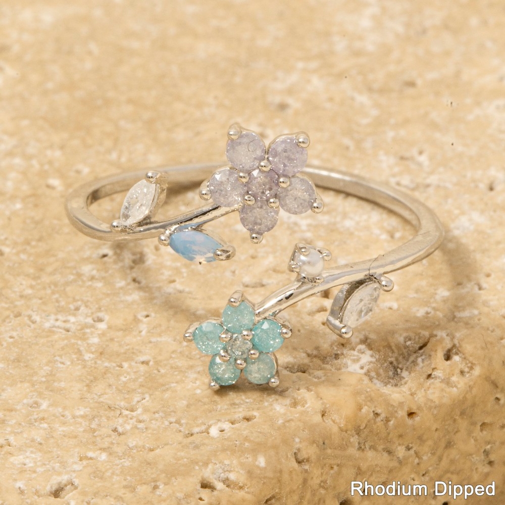 This piece is both elegant and versatile, this ring incorporates a flawless gold dipped cubic zirconia floral open band design. This item is perfect for anyone who loves to accessorize and add some personality to their outfits. Available in G. This item is sold in packs of 1.