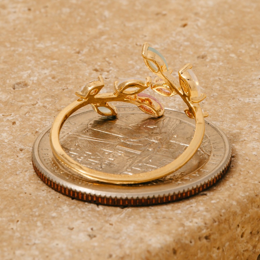 • This season's hottest ring, this ring shows off a distinctive gold dipped cubic zirconia leaves open band design. This item is a great way to add some texture and dimension to any outfit. Available in G. This item is sold in packs of 1.