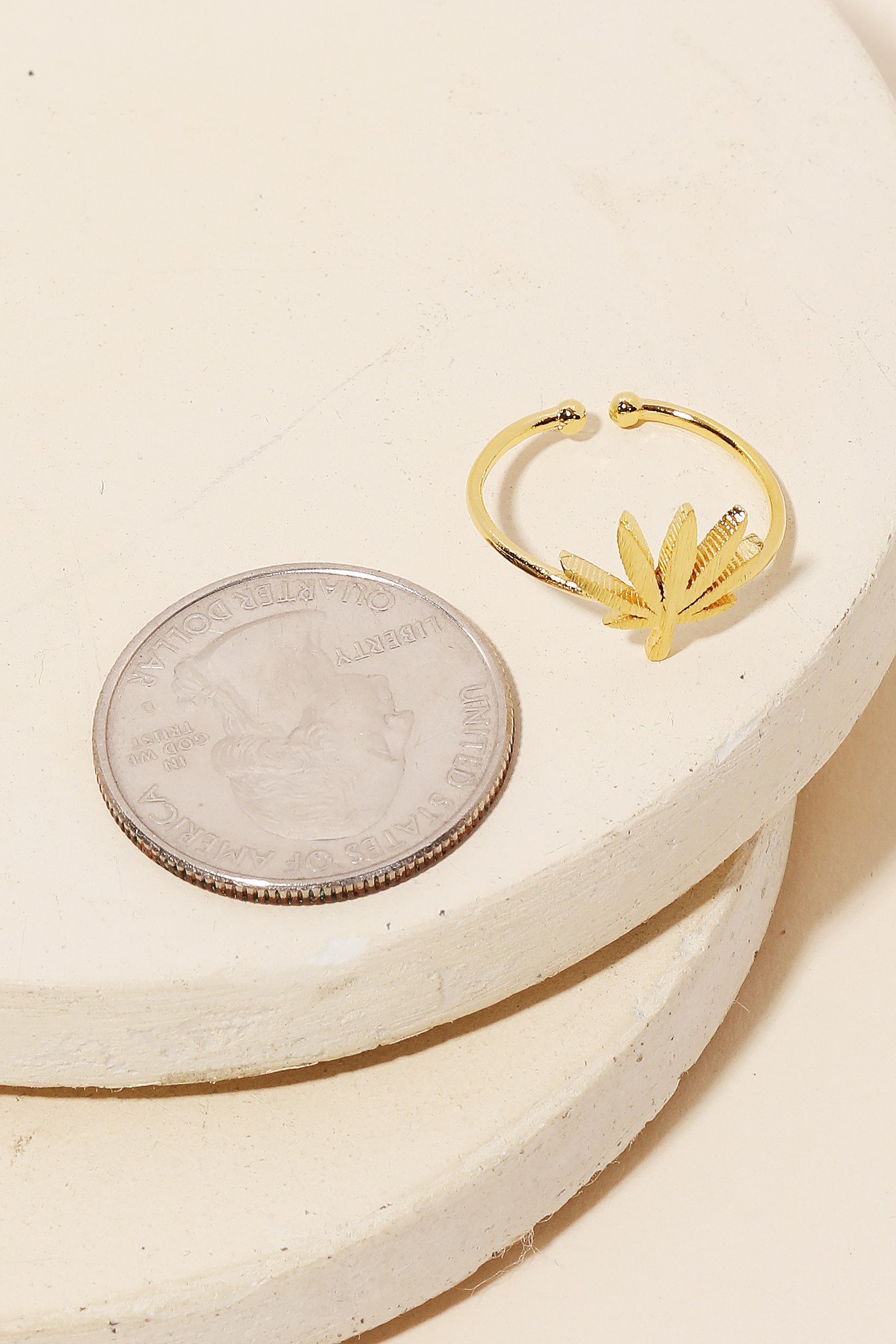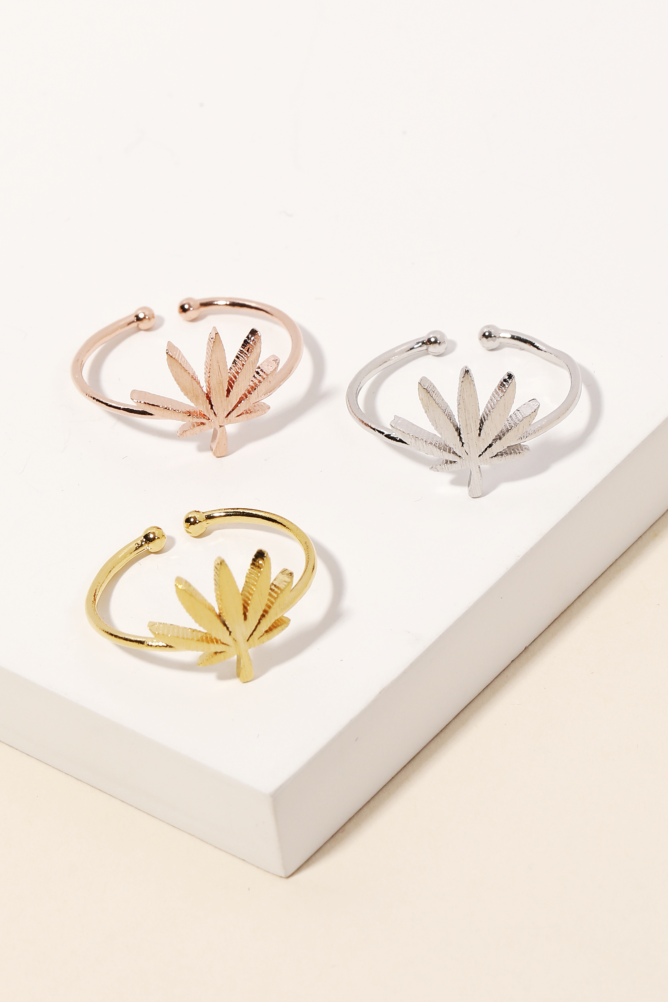 • This season's hottest ring, this ring encompasses a grand gold dipped delicate marijuana leaf adjustable design. Elevate your fashion IQ with this versatile ring, designed to seamlessly integrate into any style profile. Available in G, R and S. This item is sold in packs of 1.