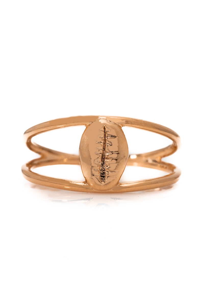• Unleash your inner fashionista, this ring displays a unique gold dipped metal cowrie shell design. A chic and sophisticated ring that's perfect for dressing up or down. Available in G, R and S. This item is sold in packs of 1.