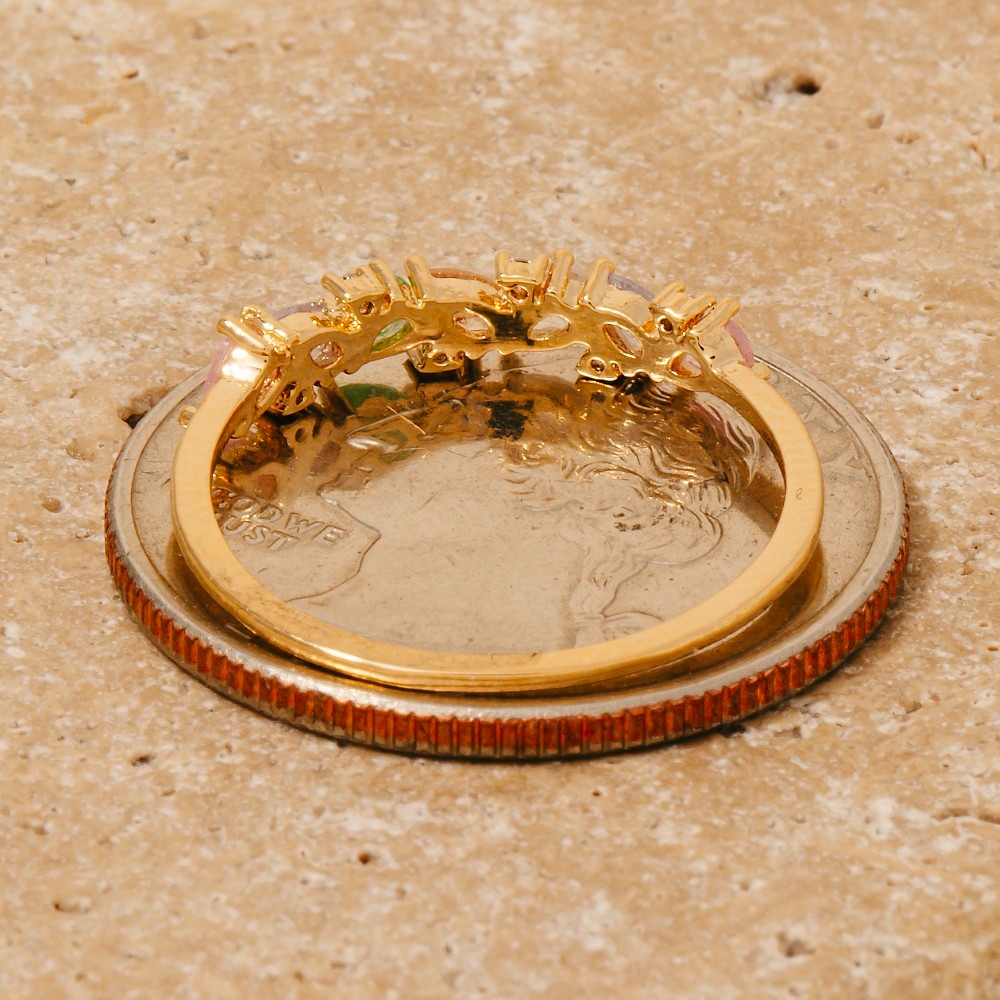 Gold Dipped Cz Colorful Moon Open Ring