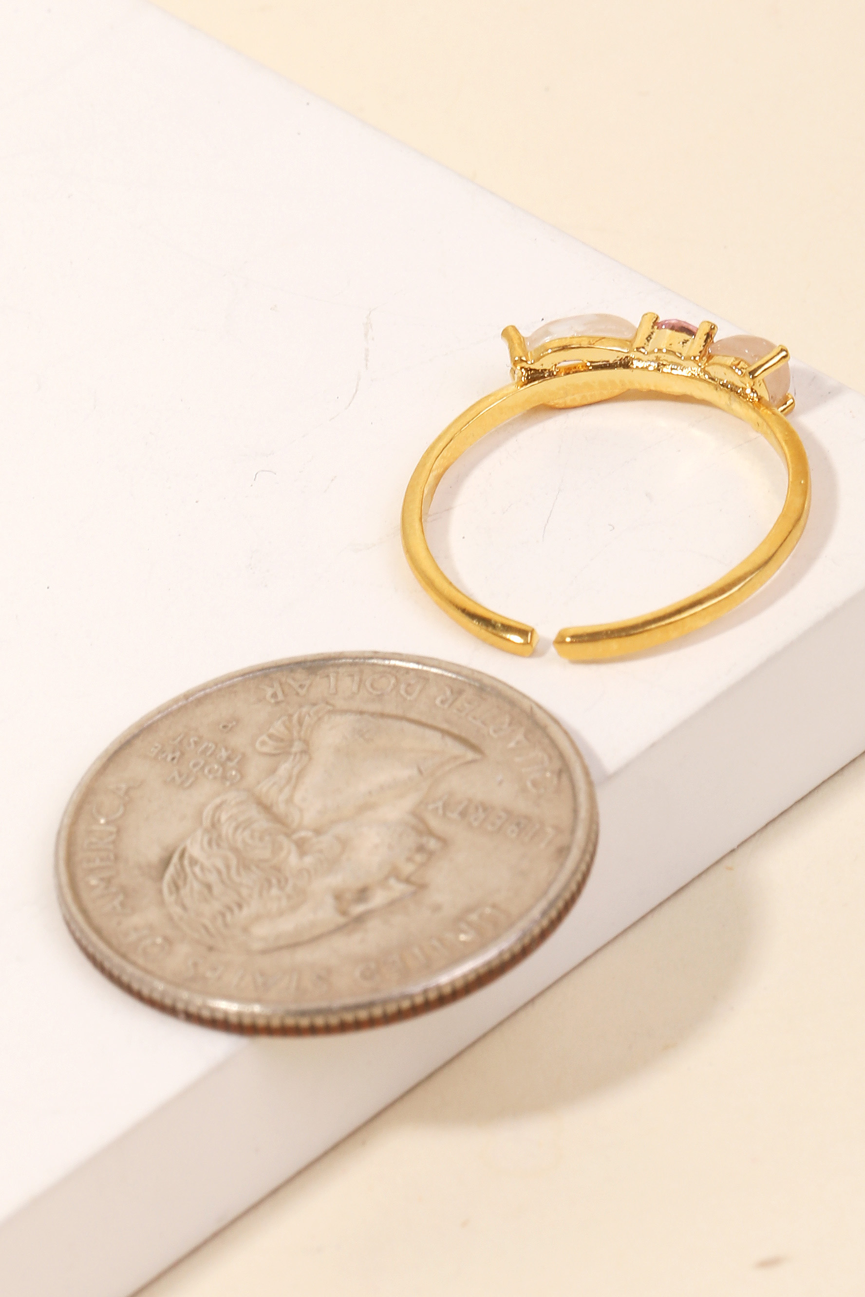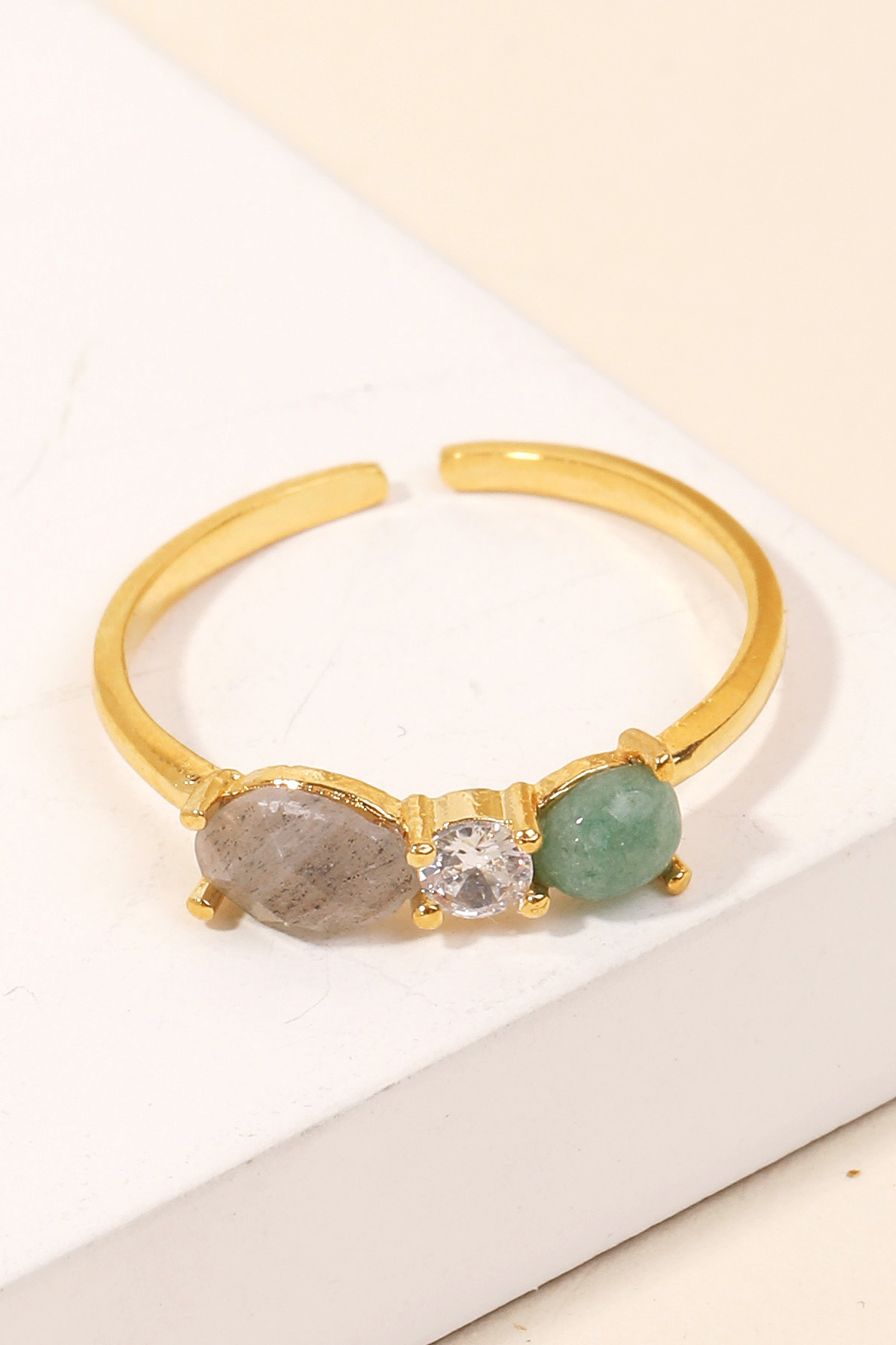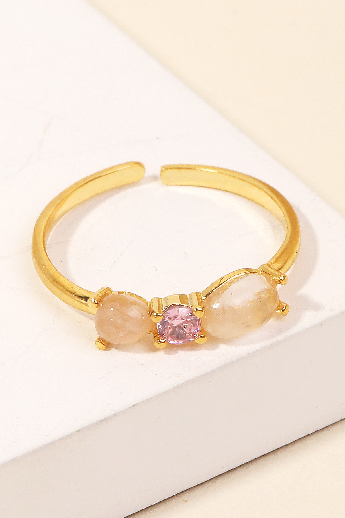 Gold Dipped Cz Colorful Moon Open Ring