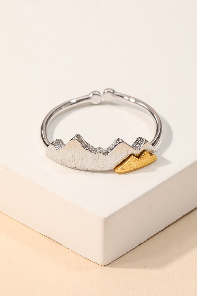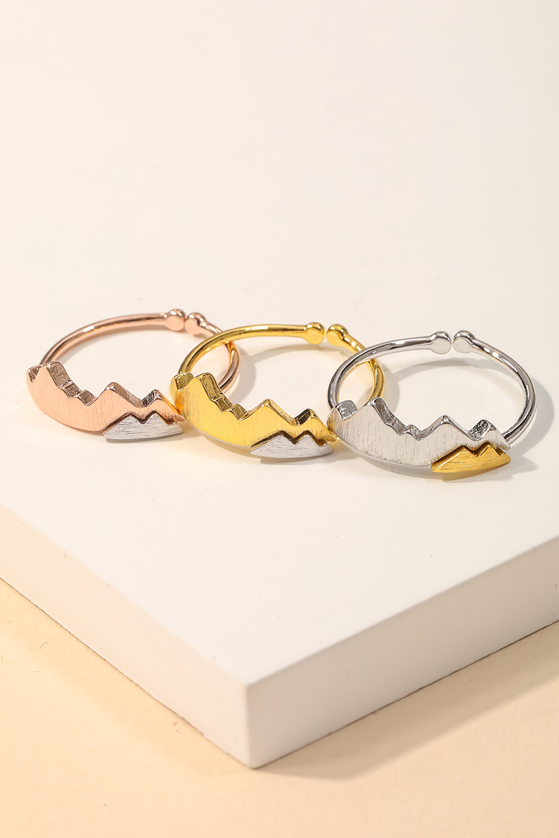 • Make a statement, this ring comes with a special gold dipped two toned mountain adjustable design. A stylish ring that's perfect for complementing your favorite outfit. Available in G and S. This item is sold in packs of 1.