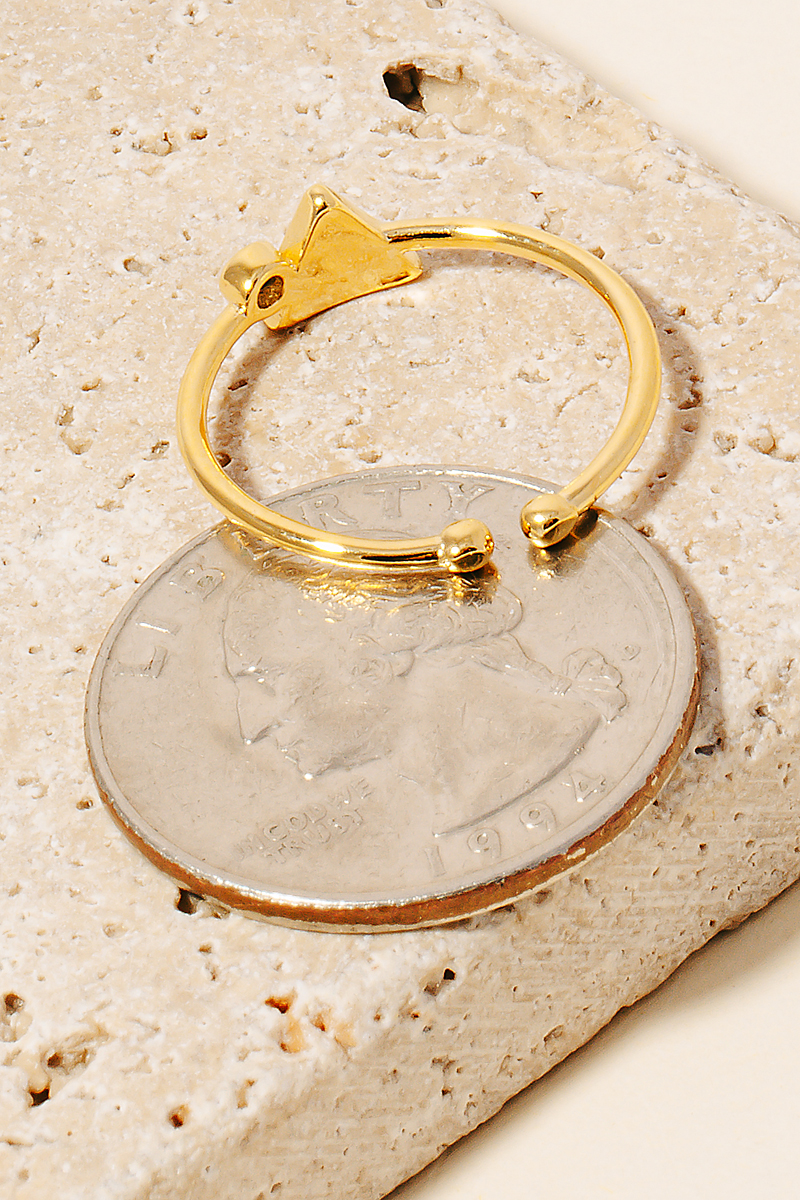 This piece is both timeless and on-trend, this ring radiates a sleek gold dipped gold dipped gemstone triangle and cubic zirconia stud open band design. A perfect addition to your wardrobe that effortlessly enhances your style. Available in G and S. This item is sold in packs of 1.