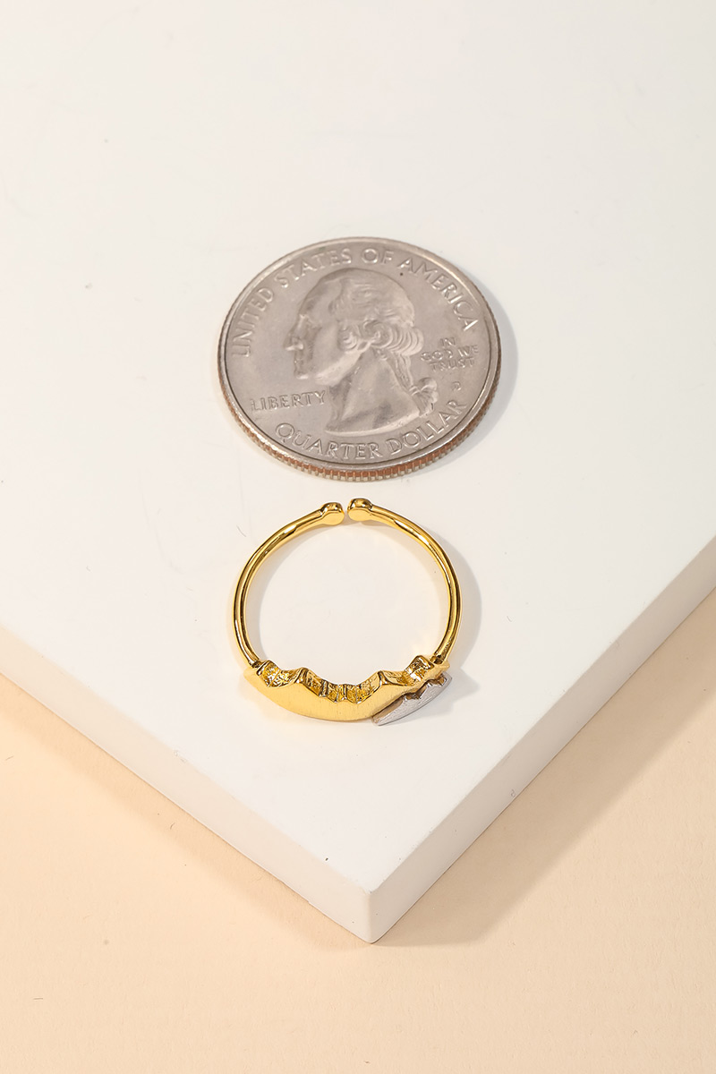 - Make a bold statement, this ring presents a striking gold dipped two toned mountain adjustable design. Achieve a perfect blend of style and sophistication with this versatile ring, a fashion-forward choice for any occasion. Available in G, R, S. This item is sold in packs of 1.