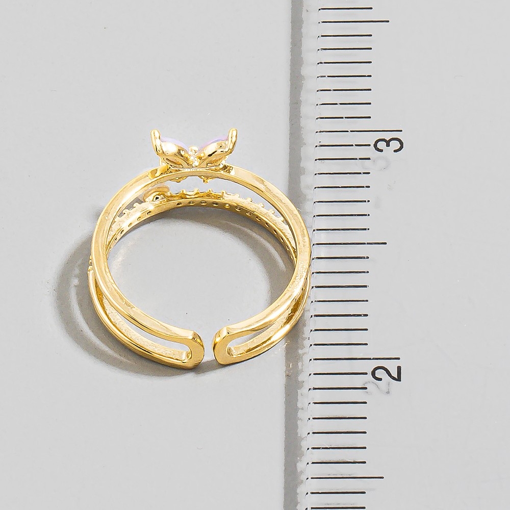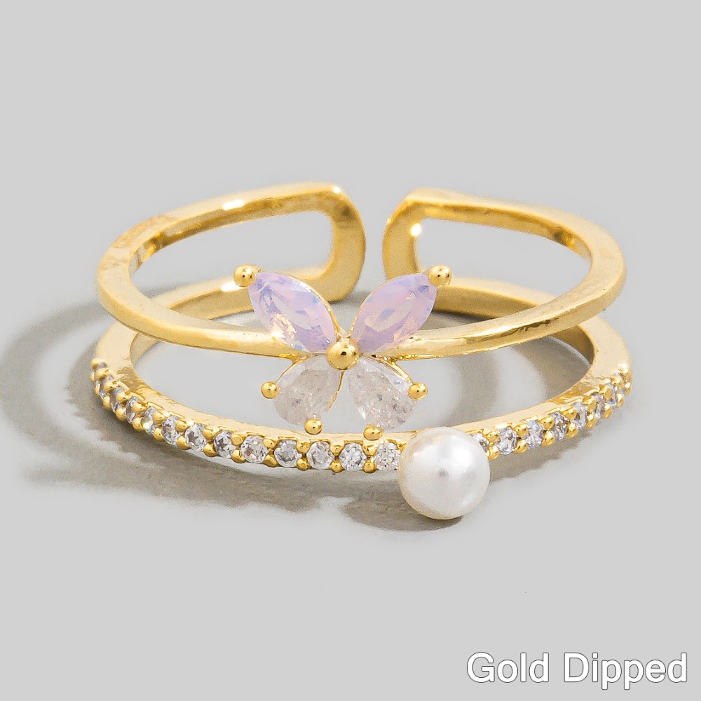 Double Cz Flower And Butterfly Open Band Ring