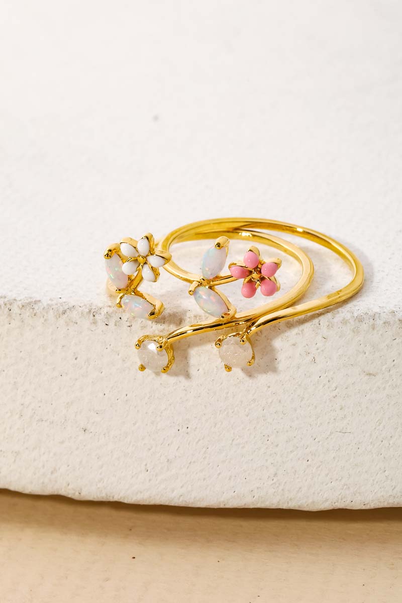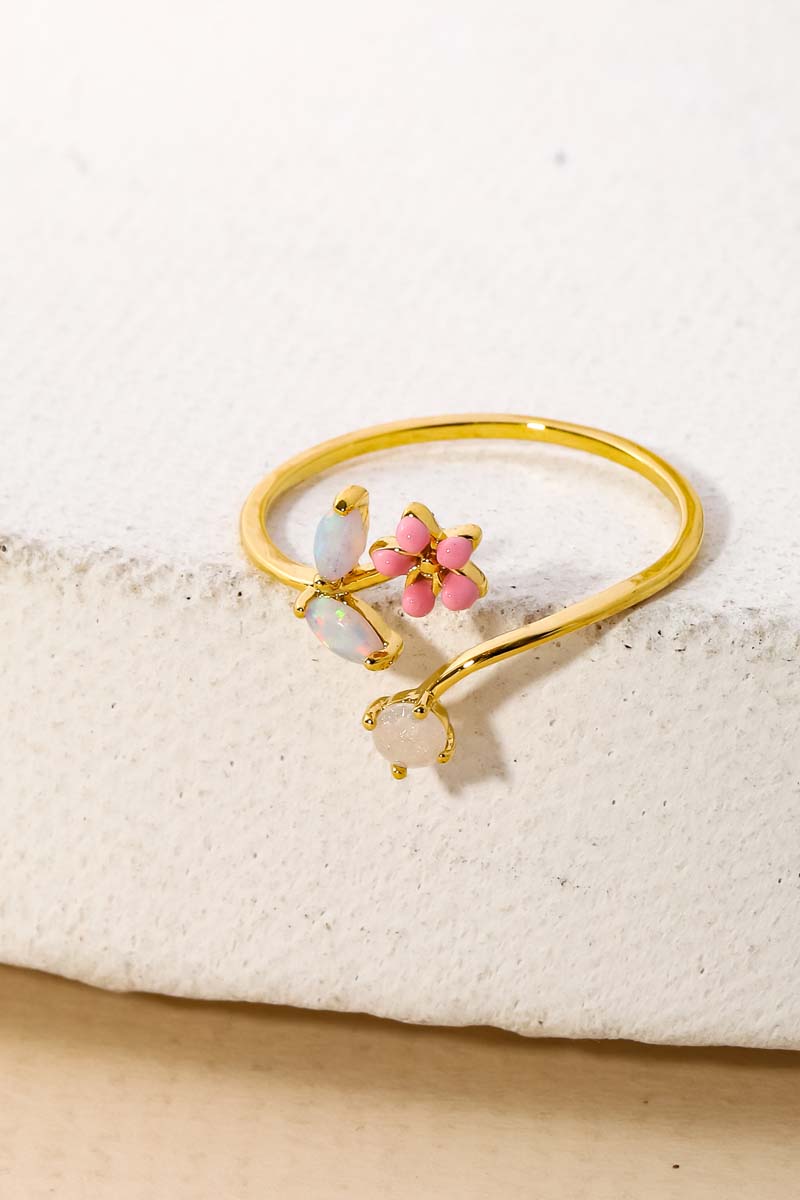 This must have trending accessory made into a open flower vine twist ring design. A beautiful gift for a loved one! Available in PK and WH.
