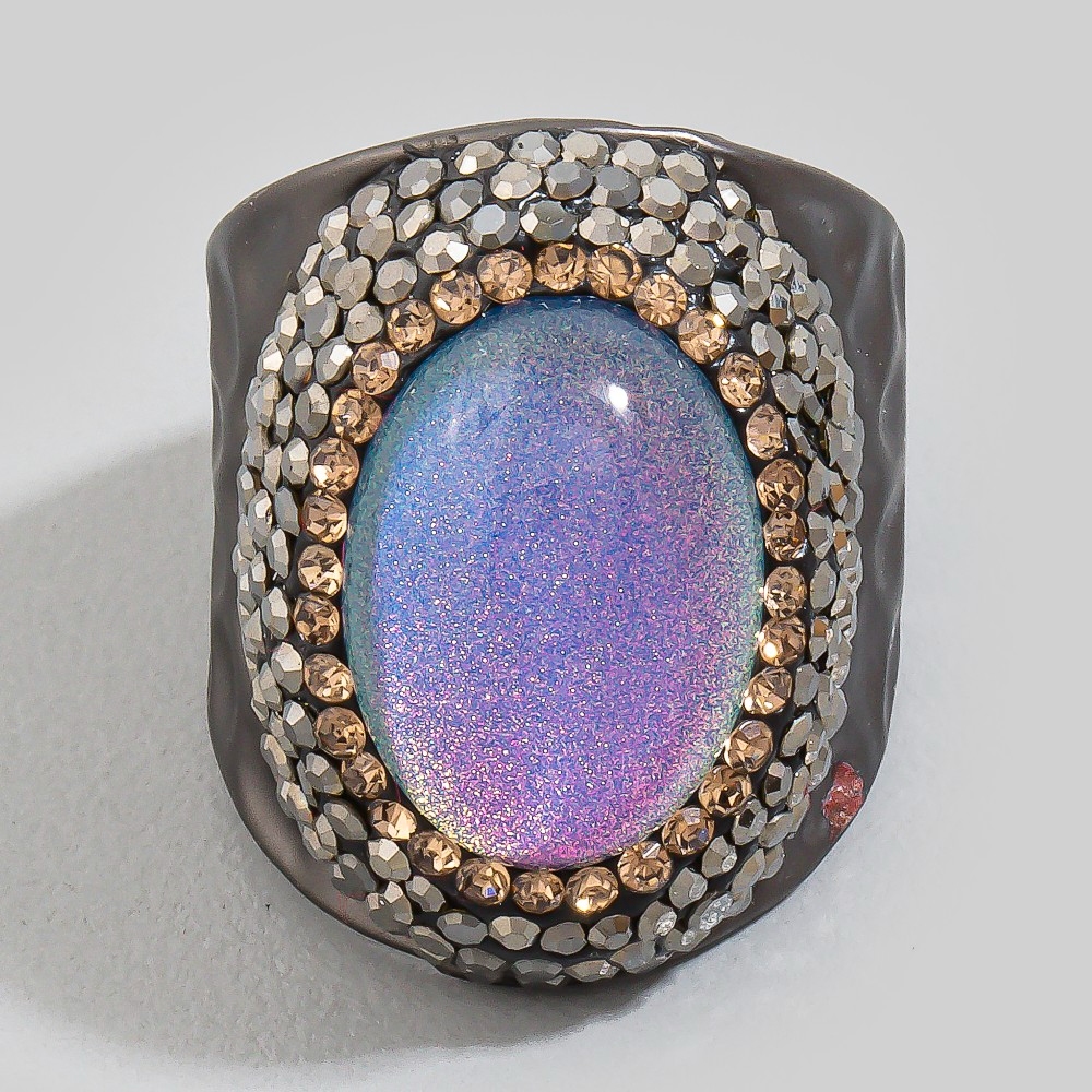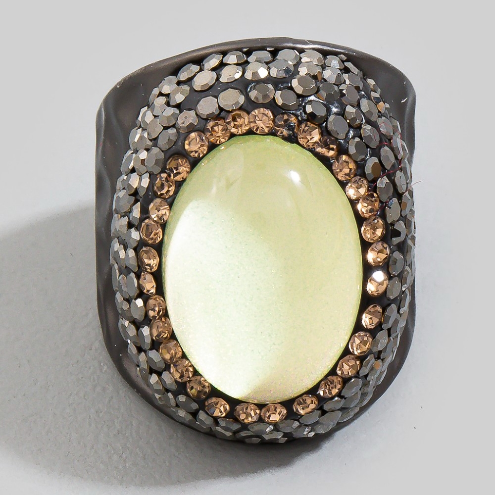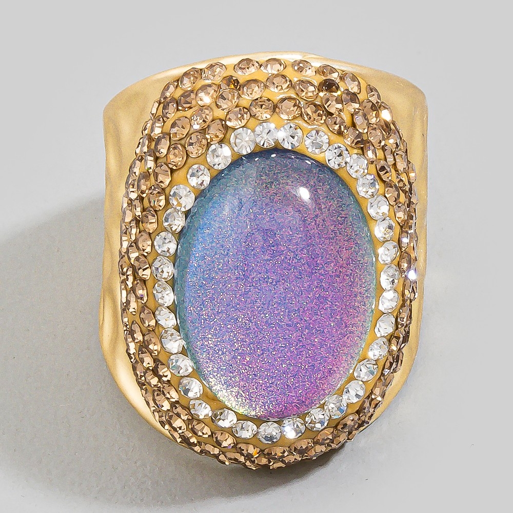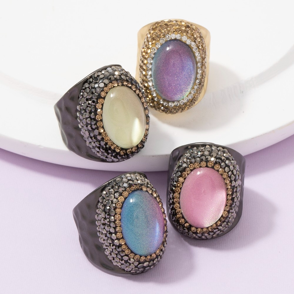 Bold, daring, and endlessly stylish, this ring emanates an elegant oval glass stone pave statement design. Add some personality to your outfit with this stylish ring. Available in BKBL, BKPK, BKYW, GDBL. This item is sold in packs of 1.