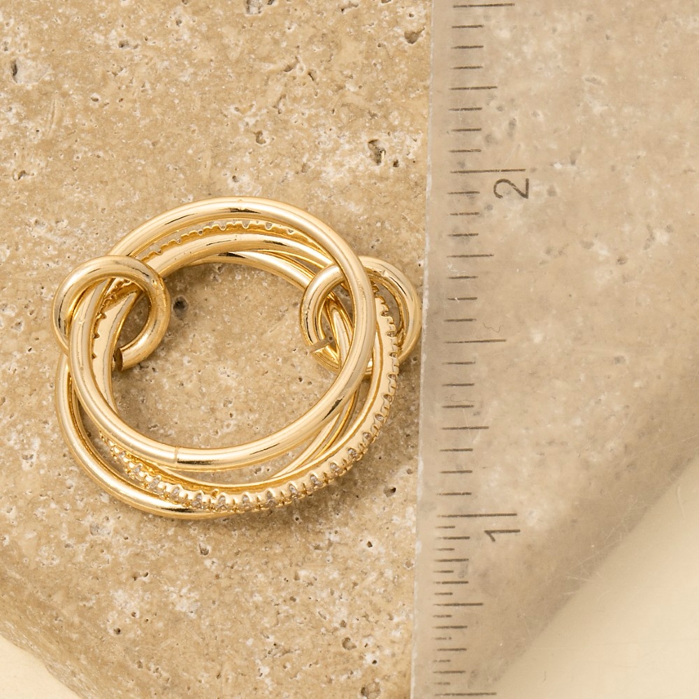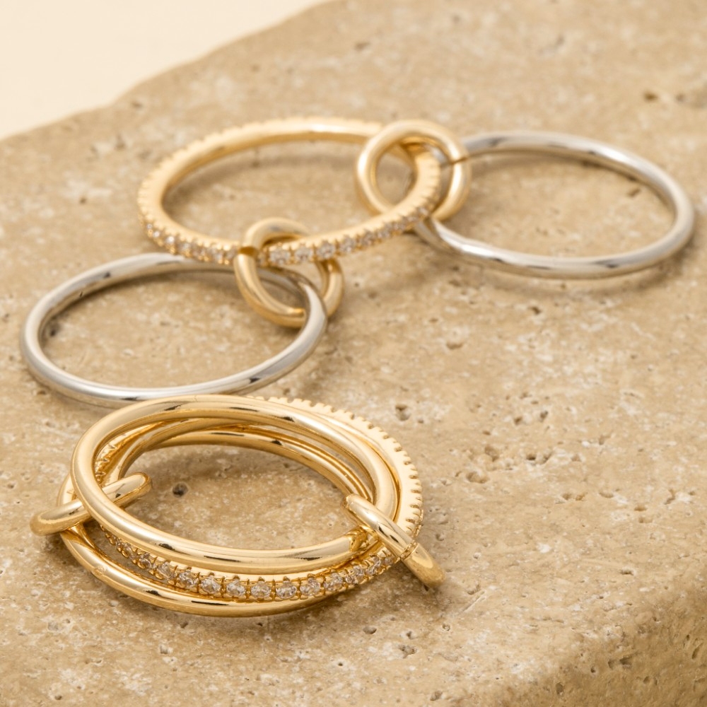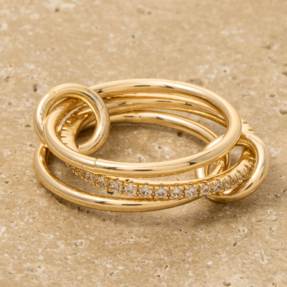 - Perfect for any occasion, this ring set includes a stunning 3 piece linked band rings set design. Redefine your fashion identity with this versatile ring set, a timeless piece that complements any wardrobe. Available in GDCRY, MGDCRY. This item is sold in packs of 1.