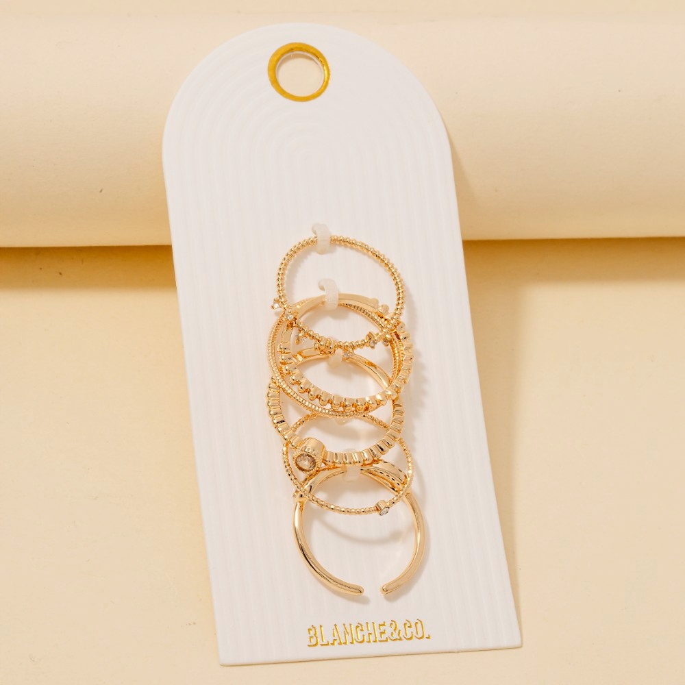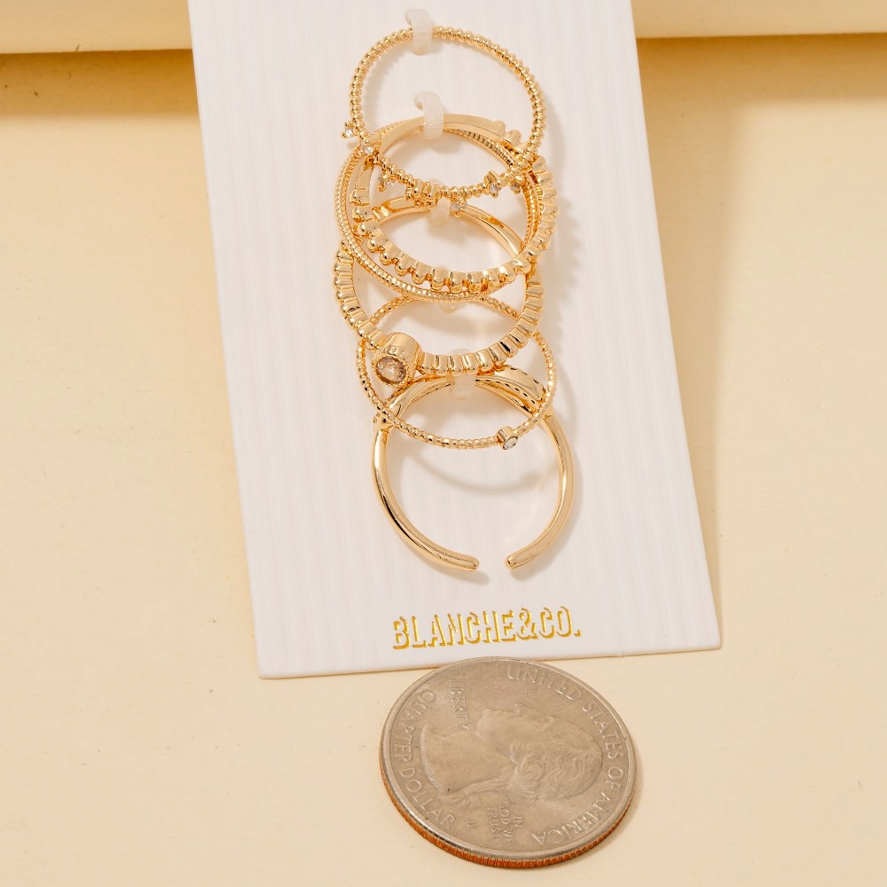 • An instant wardrobe staple, this ring set flaunts a luxurious 5pc assorted cubic zirconia band rings set design. Perfect for adding a touch of glamour and sophistication to any outfit, this ring set is a must-have. Available in GCL, SCL. This item is sold in packs of 1.