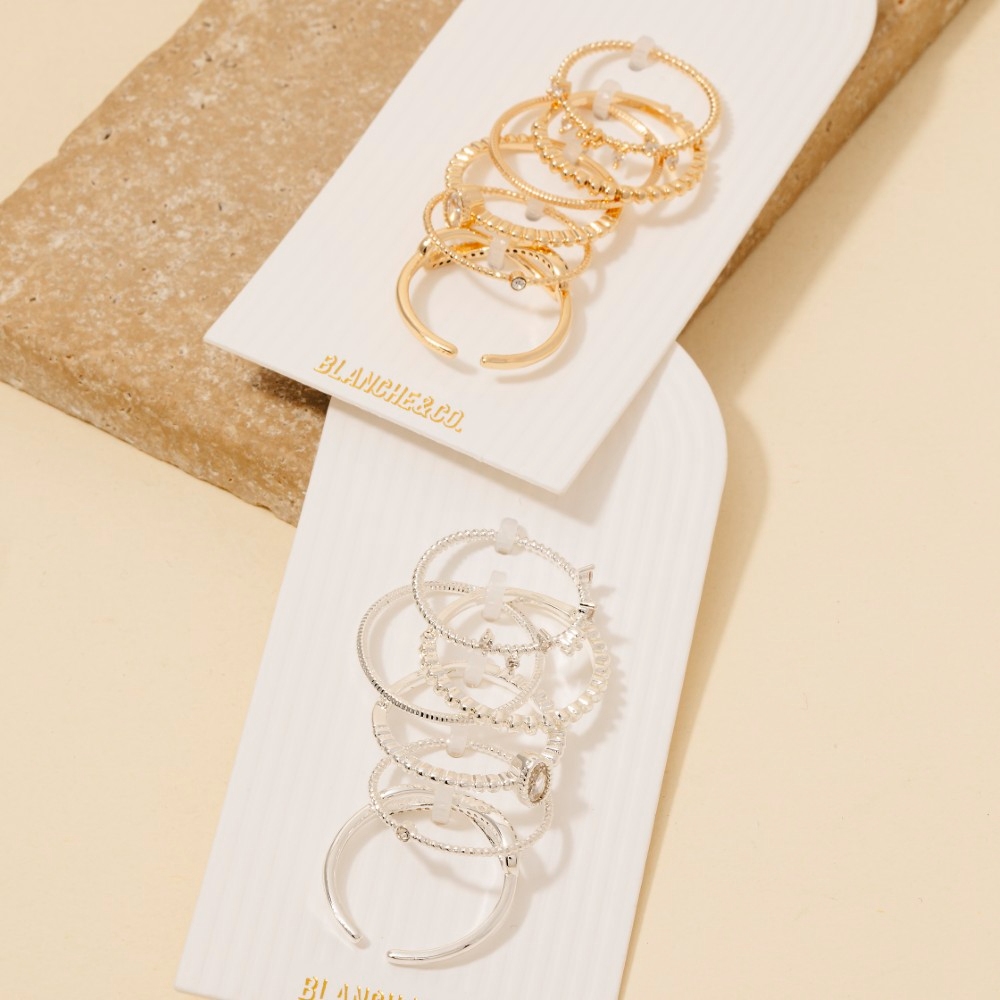 Assorted Ten Piece Metallic Ring Set
