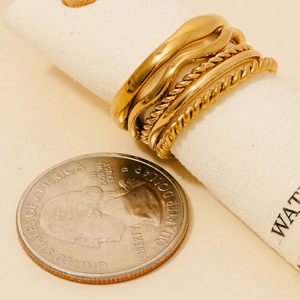 - A contemporary masterpiece, this ring set boasts a magnificent 5pc stainless steel mixed band rings set design. Elevate your fashion ensemble effortlessly with this versatile ring set, a stylish choice for the modern trendsetter. Available in GD, RH. This item is sold in packs of 1.