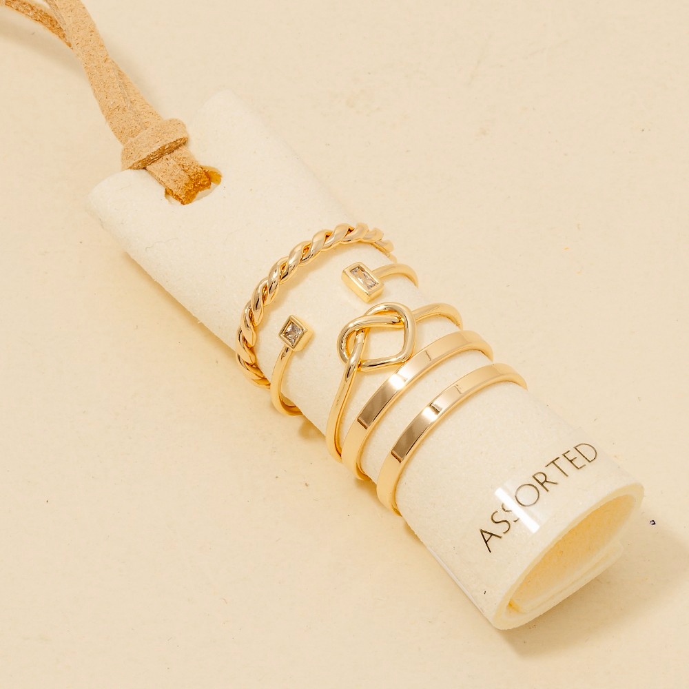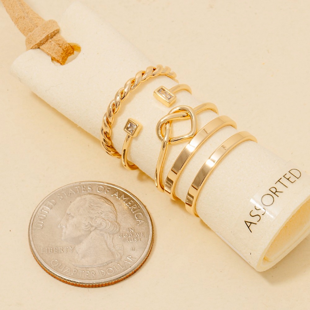 • Unleash your inner fashionista, this ring set embodies a sophisticated assorted styled 5pc band rings set design. This item is a great way to add some texture and dimension to any outfit. Available in GDCRY. This item is sold in packs of 1.