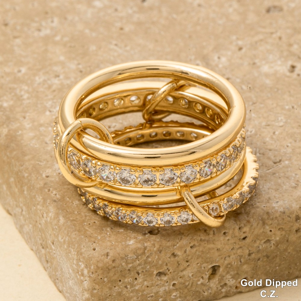• This piece is designed to be both stylish and functional, this ring set exudes a refined gold dipped cubic zirconia pave linked band rings design. Transform your outfit into a fashion masterpiece with this versatile ring set, an essential for the style-conscious individual. Available in G7, K7. This item is sold in packs of 1.