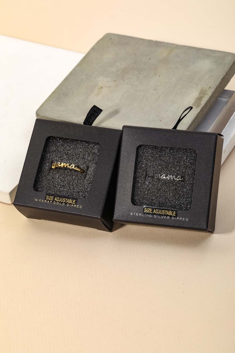 Classy, Flashy, and everything in between must have ring has a gorgeous secret box gold dipped mama print ring design. An excellent choice for business casual occasions! Available in GD. This item is sold in packs of 2.